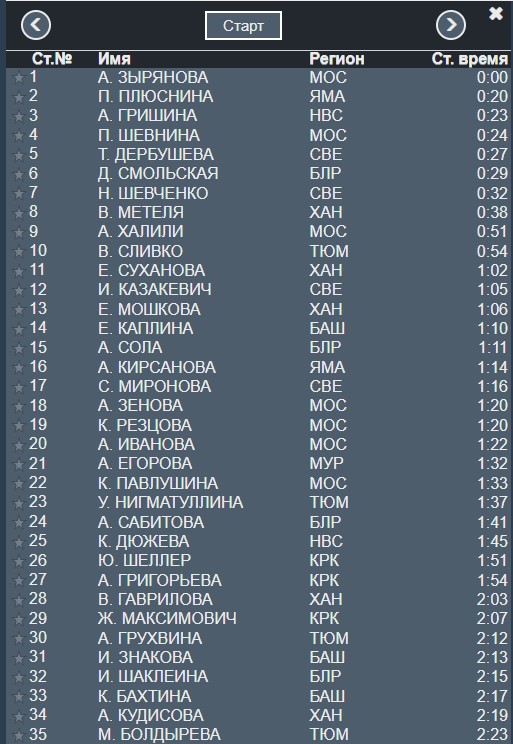 Гришина, Смольская и Дербушева уходят на 1 круг.