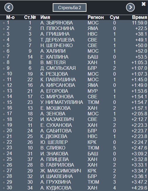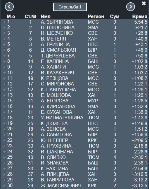 Плюснина и Гришина отстрелялись точно и идут сразу з лидером.