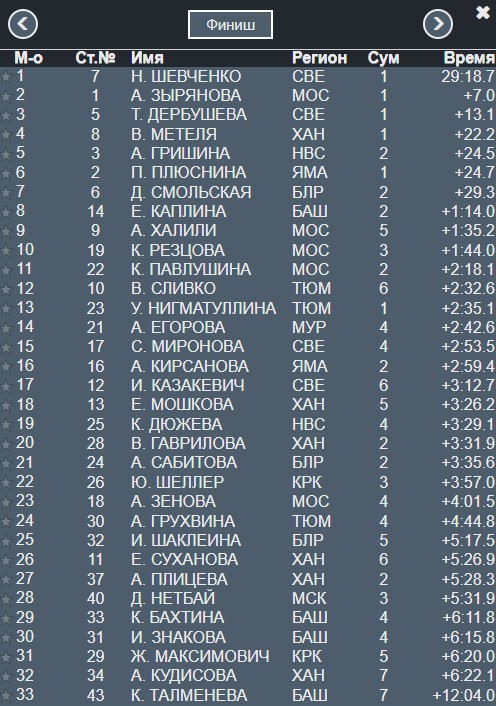 А вот Наталия Шевченко уходит на круг и падает на 5-е место. Опередили её Гришина и Дербушева.