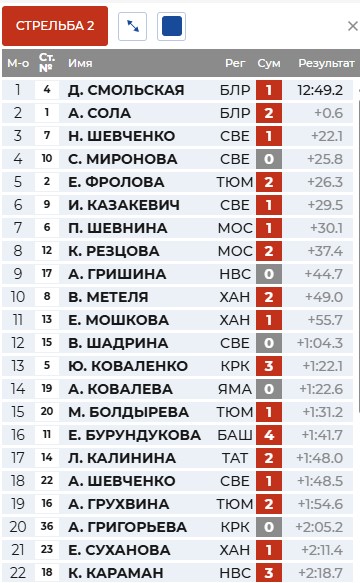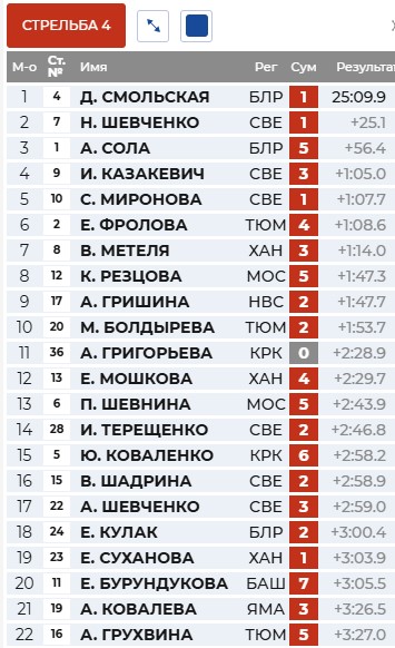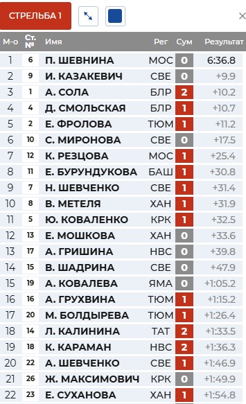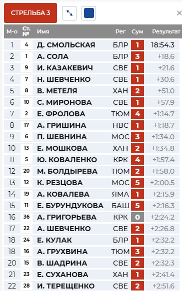 Круг у Солы, а Смольская отстрелялась точно и вышла в лидеры.