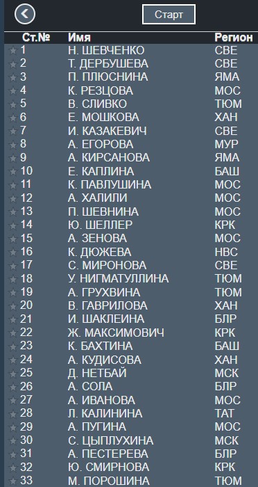 Сливко лидирует на разгне, следом за ней идут Плюснина и Каплина.