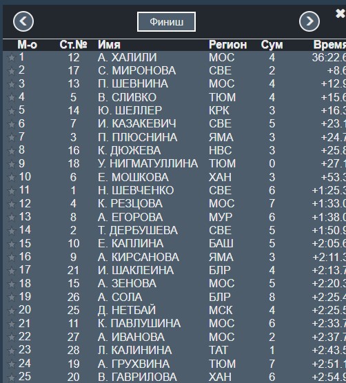 Финиш, Халили побеждает сегодня. Миронова вторая.