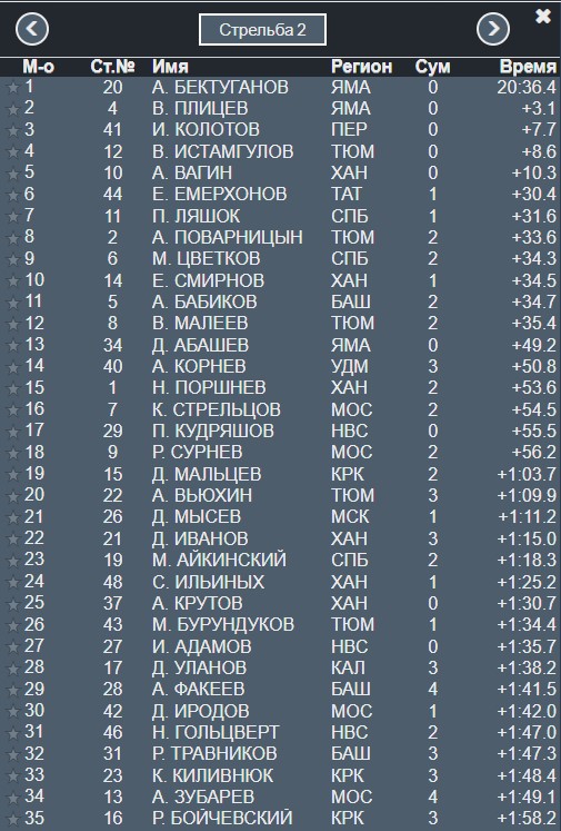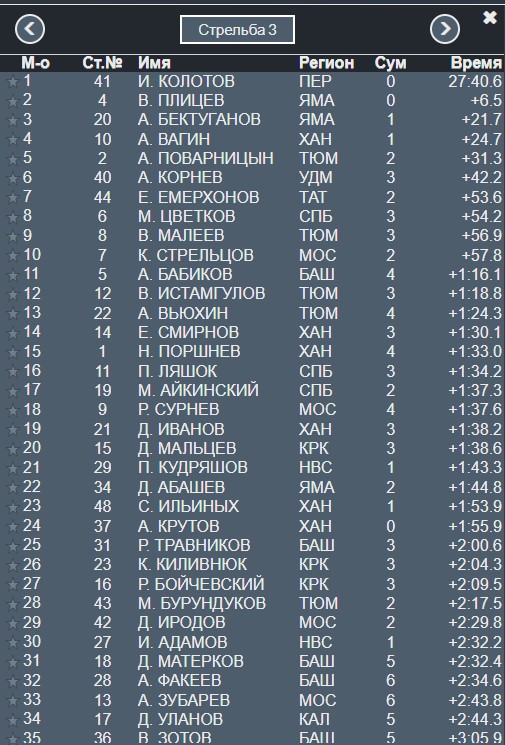 Перед стрельбой Поварницын продолжает лидировать, а на второе место вышел Цветков.