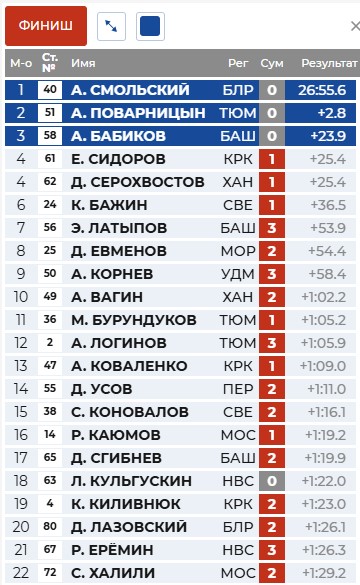 Бабиков вырывает бронзу на финише! Антон опередил на 0.5 секунды Сидорова и Серохвостова, которые показали одинаковое время.