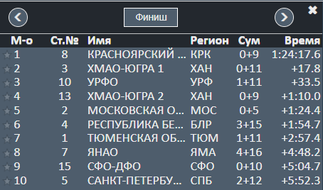 Финиш! Красноярский край выигрывает золото. Первая команда ХМАО-Югра – серебро, УРФО – бронза.