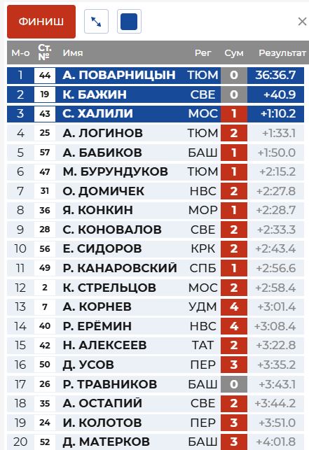Поварницын и Халили с нулём прошли 3-й рубеж и они продолжают идти на первом и втором месте. Между ними 12 секунд.