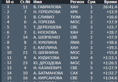 В лидеры у нас вышла Носкова. Далее располагаются Гаврилова и Шевченко. Гербулова на четвёртом месте.