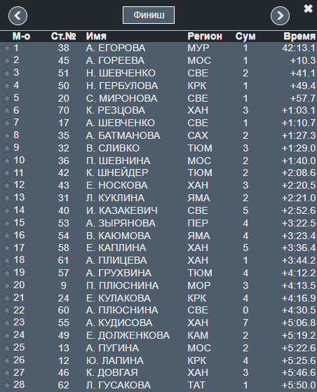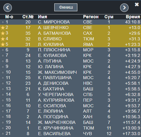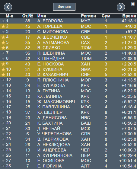 Егорова! Ну какая молодец! Какой ход, какая стрельба. Великолепная гонка в исполнении Анастасии. Это её первая победа в этом сезоне. Но зато какая красивая. Браво! Серебро забирает Анастасия Гореева, которая помимо этого ещё и заберёт Малый Хрустальный Глобус в зачёте индивидуальных гонок. Ну и бронзу в великолепном сражении двух Наташ вырвала Шевченко. Казалось, что после заключительного рубежа отставание довольно приличное. Но экс-лыжница смогла его отыграть и вырваться вперёд. Гербулова не смогла удержать медаль. Гонку для Вас провёл Даниил Чугунов, до новых встреч на Sport.ru!