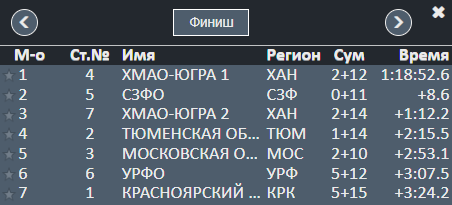 Вот это ХМАО-Югра даёт! Две команды в призах. Золото и бронза – это сильно. В таких погодных условиях побеждают действительно сильнейшие. Ну и хочется отметить команду СЗФО, которая почти всю гонку шла ровно и вполне заслуженно заехала в призы. Была близка Тюмень, но в последний момент подвела стрельба. Чемпионы прошлой смешанной эстафеты из Красноярского края сегодня провалились, они финишировали последними. За такую непредсказуемость мы и любим биатлон. Гонку для вас провёл Даниил Чугунов, до новых встреч на Sport.ru!