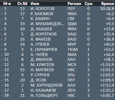 🥉 Ильназ Мухамедзянов (Удмуртия) +1:12.9 (2)