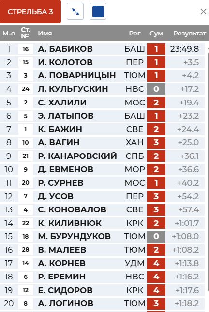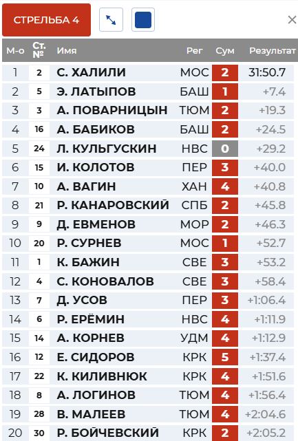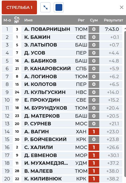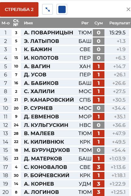 Перед первой стрельбой вышел на первое место Латыпов, а Бажин - второй.