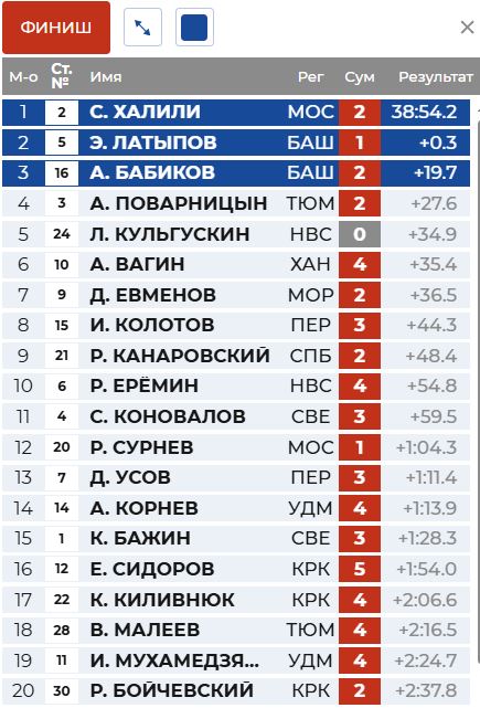 В 5 секундах от лидеров Латыпов и Халили.