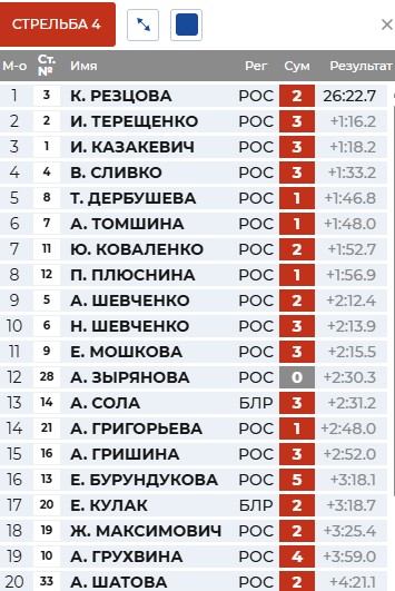 Стреляет точно Терещенко и выходит на трассу сразу за Казакевич. Сливко с кругом остаётся 4-й.