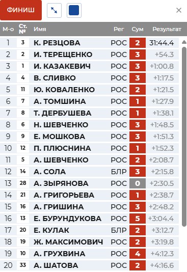 По два круга у Резцовой и Казакевич.