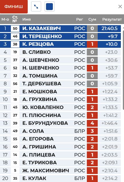И в итоге финишировала Терещенко первой, опередив Резцову на 0.3 секунды.
