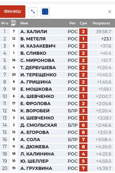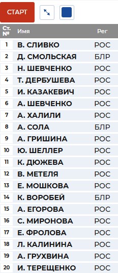 На разгоне лидирует Сливко, сразу за ней Смольская и Казакевич.