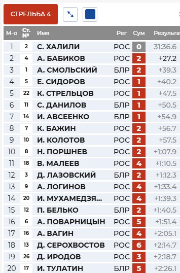 Логинов вышел в лидеры перед стрельбой, Поварницын второй, Халили - третий.