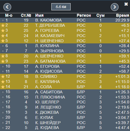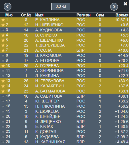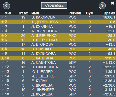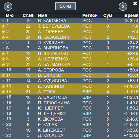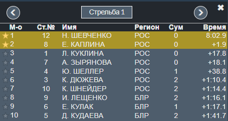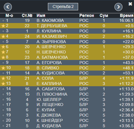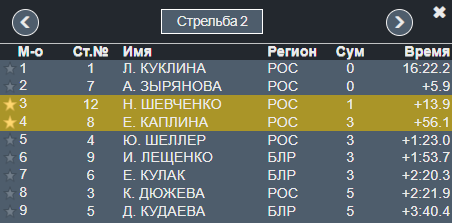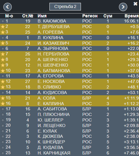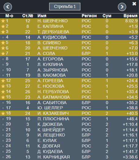 У Батмановой промах на первом рубеже. У Казакевич - два.