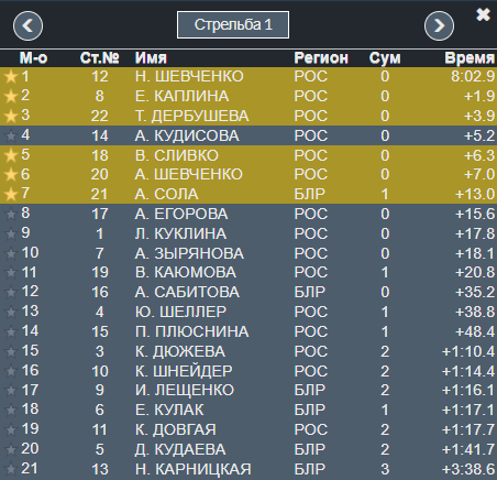 А. Шевченко точна на первом рубеже! У Солы - промах.