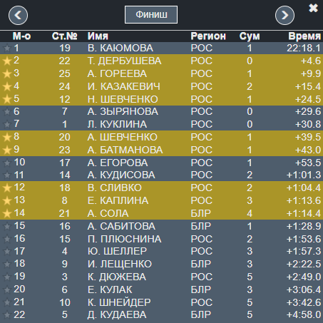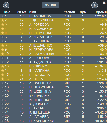 Расклады на финише! Скорее всего Каюмова сегодня победит. Дербушева должна остаться второй, а Гореева – третьей. Ждём финиша оставшихся спортсменок.