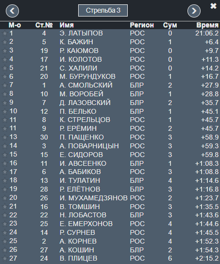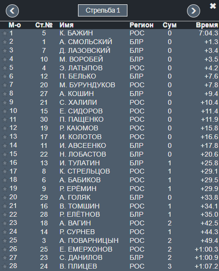 Приветствую Вас, уважаемые любители биатлона! Третий этап Кубка Содружества – трансляция из Раубичей. Нам с Вами предстоит увидеть мужской масс-старт. Сегодня на старт выйдут все сильнейшие, поэтому будет интересно. Гонку для Вас прокомментирует Даниил Чугунов. И пусть победит сильнейший!