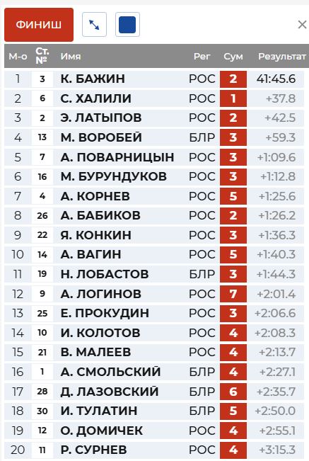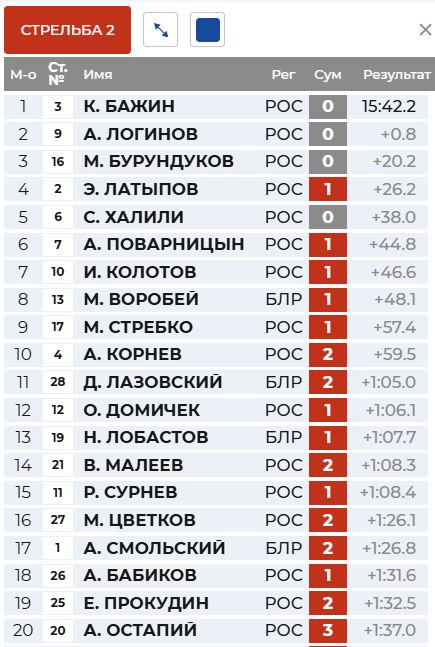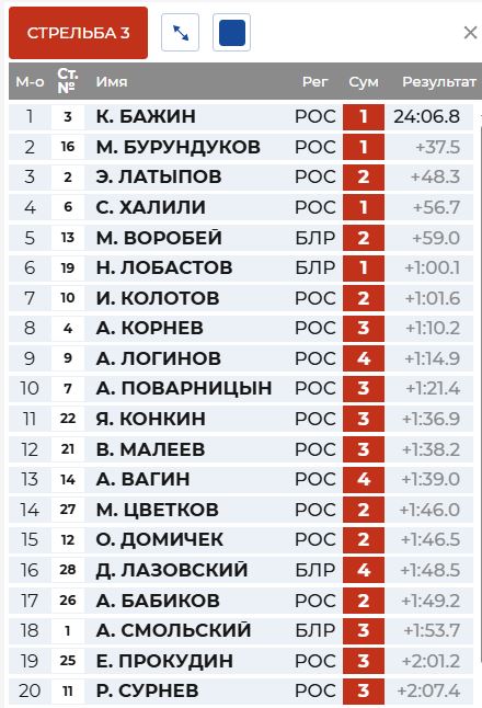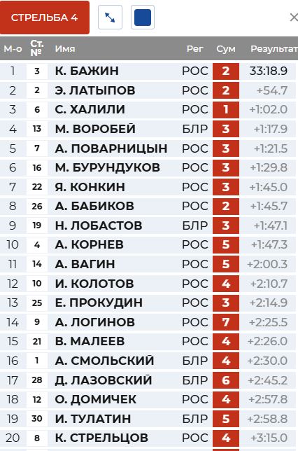 1 круг у Бажина, а Латыпов отстрелялся точно, но долго.