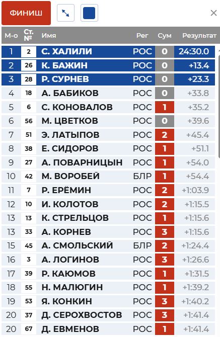 Бажин и Сурнев сегодня с нулём и они финишировали на втором и третьем месте.