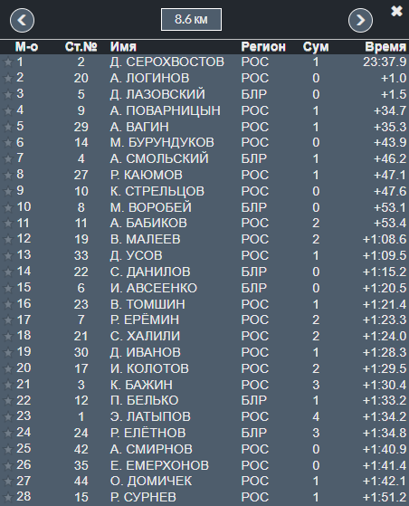 Лазовский, Логинов - два промаха. Серохвостов - три.