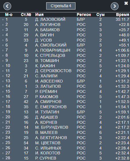 Приветствую Вас, уважаемые любители биатлона! Второй этап Кубка Содружества – трансляция из Уфы. Нам с Вами предстоит увидеть мужской масс-старт. Сегодня на старт выйдут все сильнейшие, поэтому будет интересно. Гонку для Вас прокомментирует Даниил Чугунов. И пусть победит сильнейший!