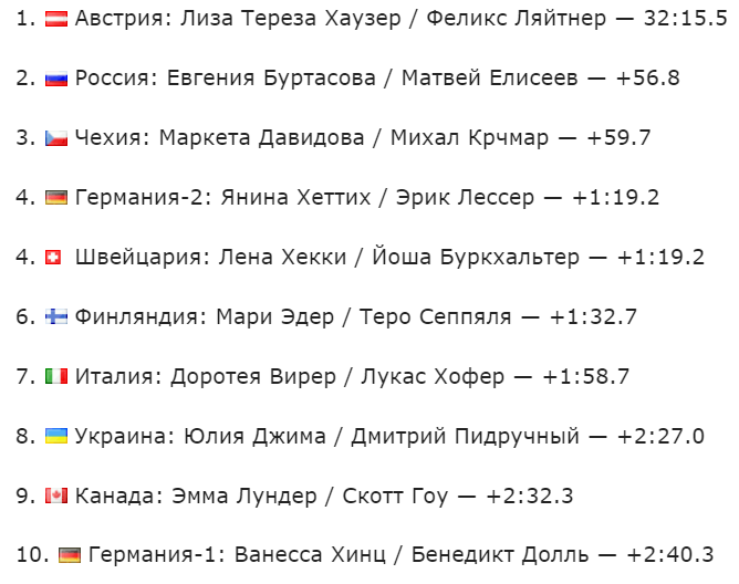 Хаузер и Ляйтнер выигрывают Рождественскую гонку, Буртасова и Елисеев завоёвывают серебро!