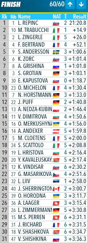 Трабукки сократила отставание от Репинц, но достать не смогла, но при этом убежала от уставшей Зингерле.