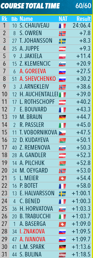 Шевченко - 29-я, Знакова - 31-я, Кретова - 49-я. Гонка завершена.