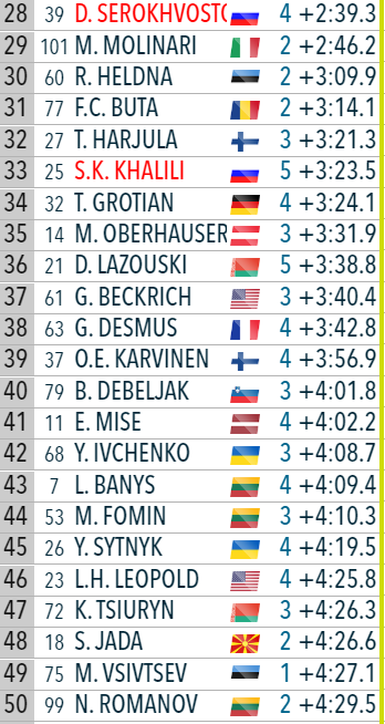Халили схватил ещё 2 минуты штрафа на втором рубеже, Карим сегодня гонку проваливает и пока далеко от призов.