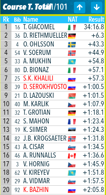 И у Серохвостова два промаха на втором рубеже, россиянин откатился на 12 место, Халили уже в третьем десятке.