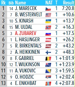 Зубарев финишировал, пока у него второй результат. Вестервельт ещё на три секунды увеличил своё преимущество.