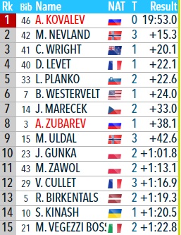 1. Ковалёв (Россия) - 19:53,0 (0)