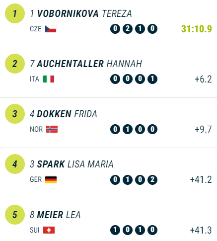 Отсечка 1.1 - немка Шпарк лидирует, дальше чешка Воборникова и итальянка Пассллер