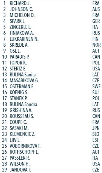 Анастасия Гришина пока что финиширует на 4-м месте. Но пока только 20 спортсменок завершили гонку