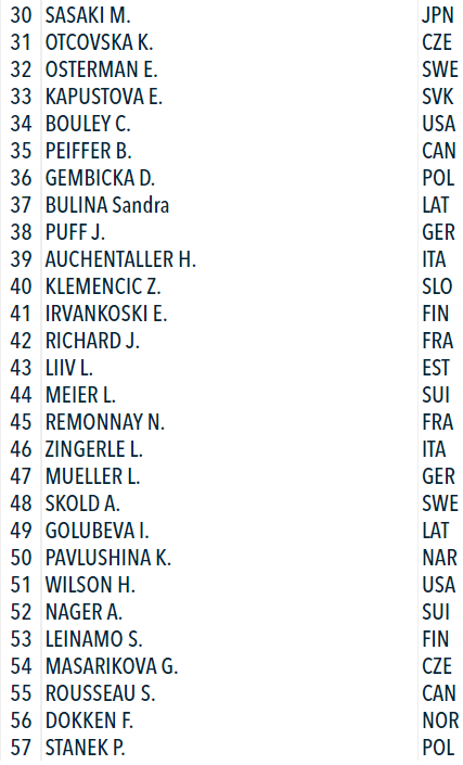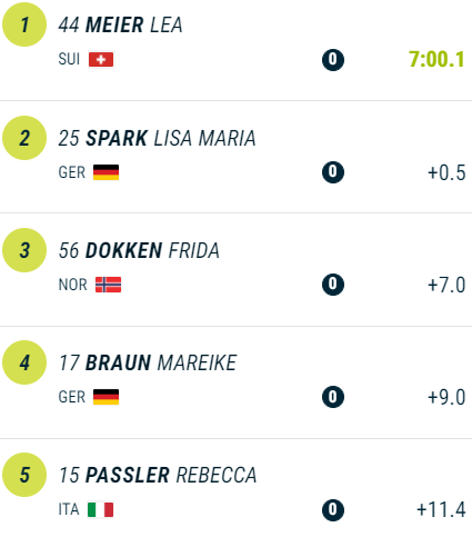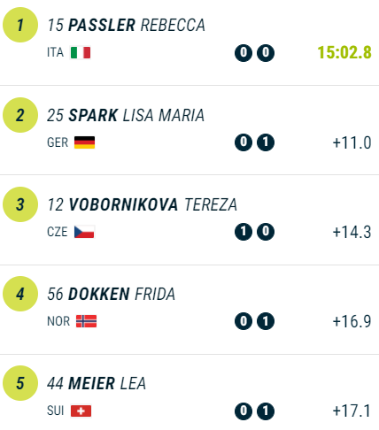 Тем временем, из тех кто финишировал, лидерство удерживает чешка Тереза Воборникова. На второй позиции итальянка Ребекка Пасслер, третий результат у немки Лизы Марии Шпарк