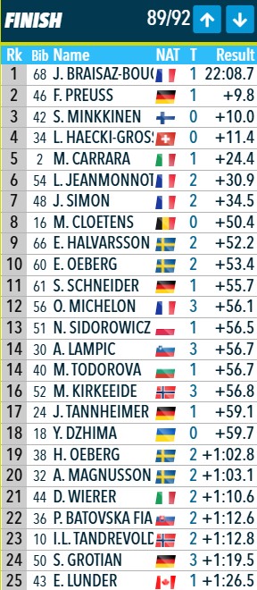 Sport.ru/Биатлон. Олимпийская чемпионка 2022 года в масс-старте и трёхкратная чемпионка мира из Франции Жюстин Бреза-Буше победила в спринте на чемпионате мира 2025 года в Ленцерхайде (Швейцария). Она преодолела дистанцию 7,5 км за 22:08,7, допустив один промах.