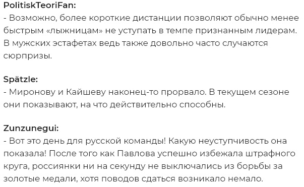 Также эмоционально победу спортсменок из России восприняли и на страницах англоязычного портала Tapatalk, где западные поклонники биатлона уже традиционно обсуждают события из мира спорта.