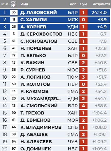 Поскольку белорусские биатлонисты выступают вне зачёта, чемпионом России официально станет Карим Халили. Серебро получит Александр Корнев, а бронзу — Даниил Серохвостов (Новосибирская область).