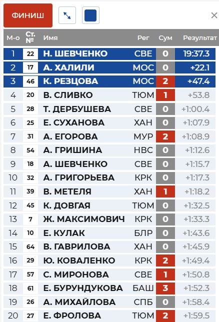 Серебро завоевала Анастасия Халили (+22,1; 0 промахов), а бронзу — Кристина Резцова (+47,4; 2 промаха).