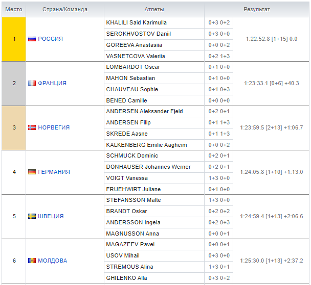 Sport.ru/ Биатлон. В субботу, 23-го января, в рамках очередного этапа Кубка IBU, который в эти дни проходит в немецком Арбер-Цвизеле, сборная России выиграла смешанную эстафету.