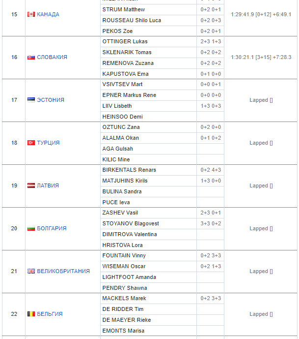Сборная России по биатлону выиграла смешанную эстафету на этапе Кубка IBU: все результаты