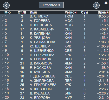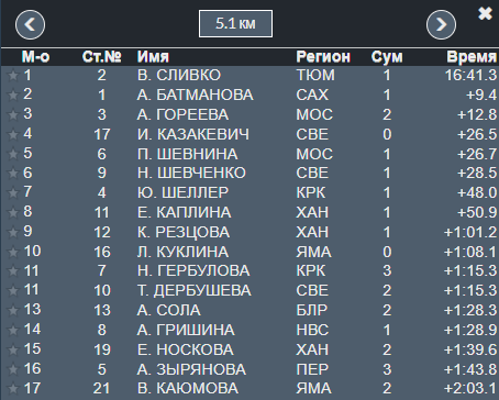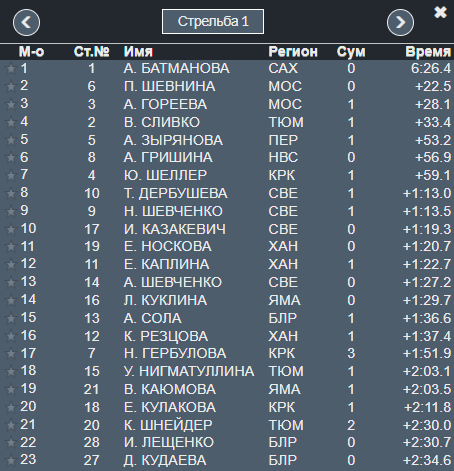 Приветствую Вас, уважаемые любители биатлона! Спартакиада – трансляция из Златоуста. Нам с Вами предстоит увидеть женскую гонку преследования. Сегодня на старт выйдут все сильнейшие, поэтому будет интересно. Гонку для Вас прокомментирует Даниил Чугунов. И пусть победит сильнейший!
