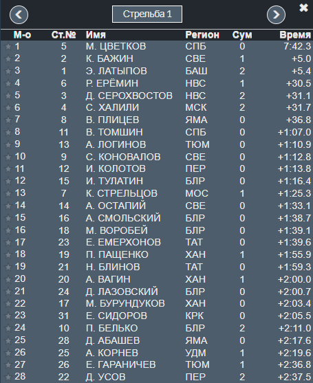 Приветствую Вас, уважаемые любители биатлона! Спартакиада – трансляция из Златоуста. Нам с Вами предстоит увидеть мужскую гонку преследования. Сегодня на старт выйдут все сильнейшие, поэтому будет интересно. Гонку для Вас прокомментирует Даниил Чугунов. И пусть победит сильнейший!