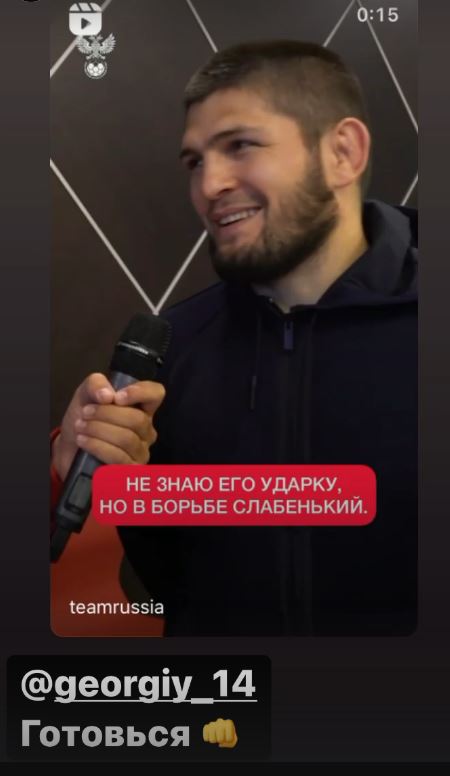 "Готовься", — написал Нурмагомедов в сторис Instagram, отметив Джикию.