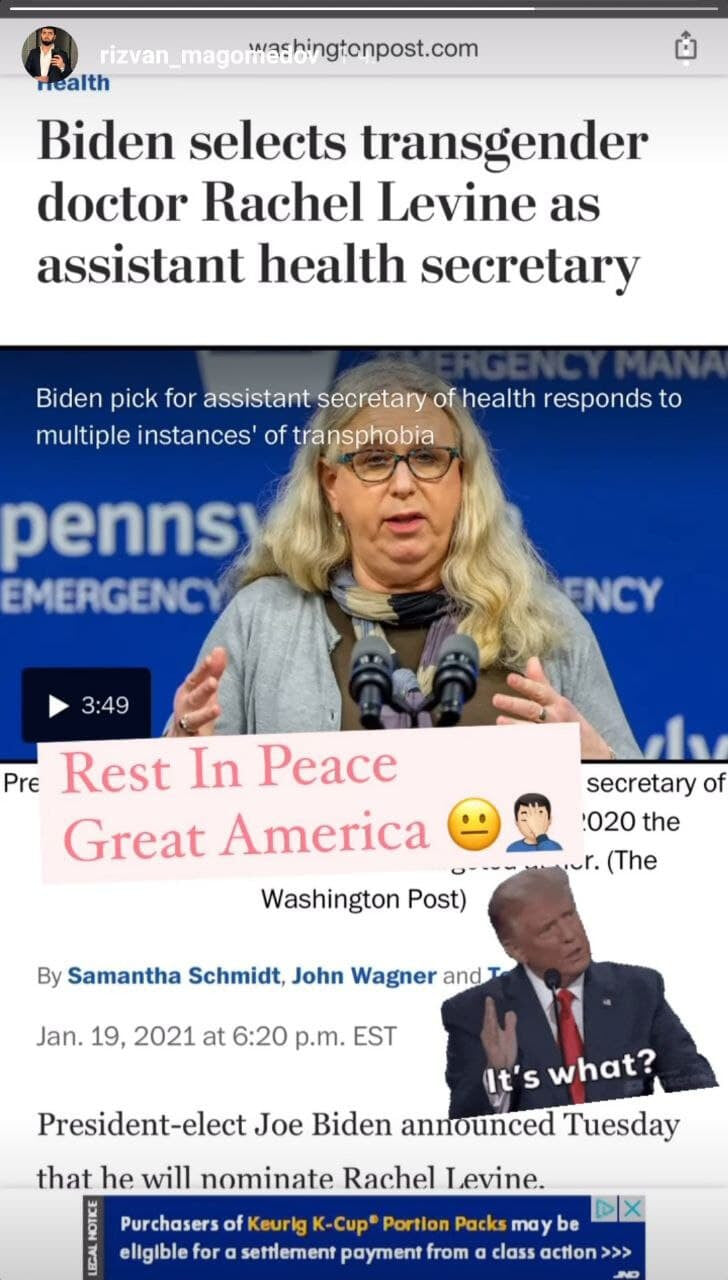Менеджер Хабиба — о трансгендере в правительстве США: "Покойся с миром, великая Америка". ФОТО