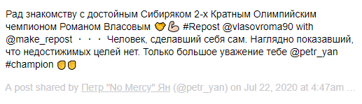 Пётр Ян выложил фото с двукратным олимпийским чемпионом Власовым: "Рад знакомству". ФОТО